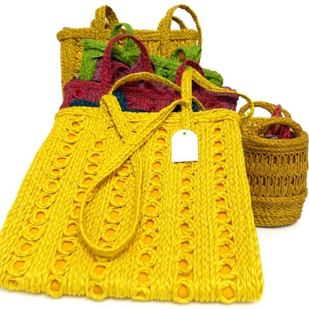 The Solstice Jute Tote - Bright Yellow Woven Bag with Loop Detail