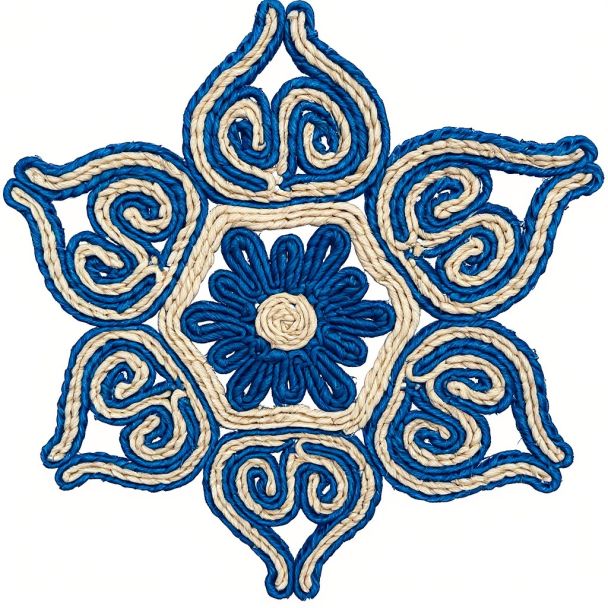 Blue & Natural Fiber Mandala Trivet - Floral Centerpiece Mat