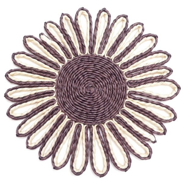 A beautifully structured, dark brown and natural jute **flower-shaped trivet**. It's thick construction provides excellent protection for **hot serving dishes** on your table.