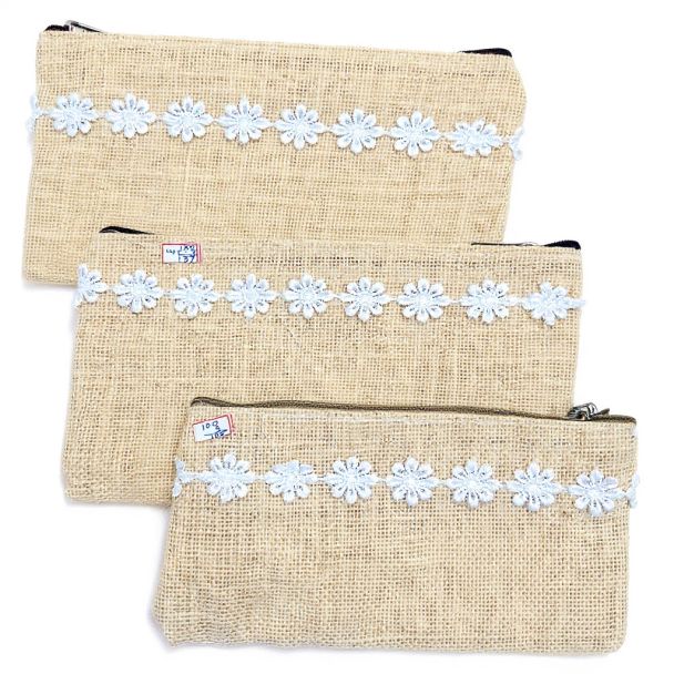 Natural Jute Zippered Pouch - Cosmetic, Clutch, or Pencil Case
